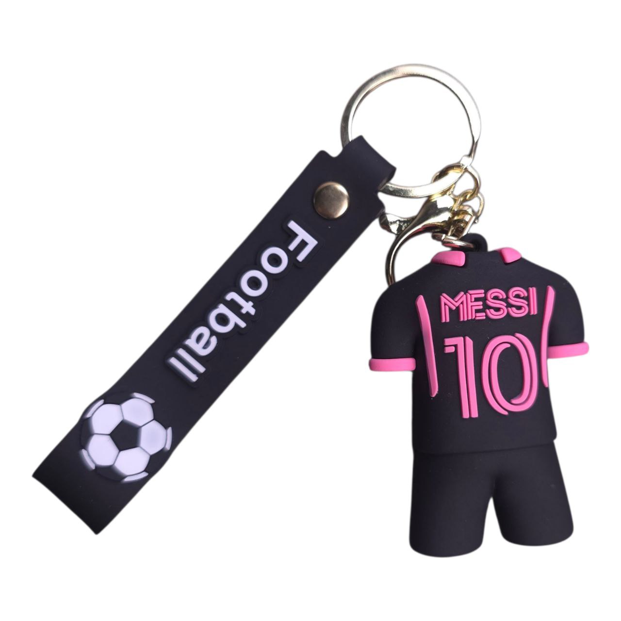 These mini jersey keychains feature iconic players like Messi, Ronaldo, and Haaland, in various club and national team kits. Soft rubber design, with a bold "Football" silicone strap and secure metal keyring.