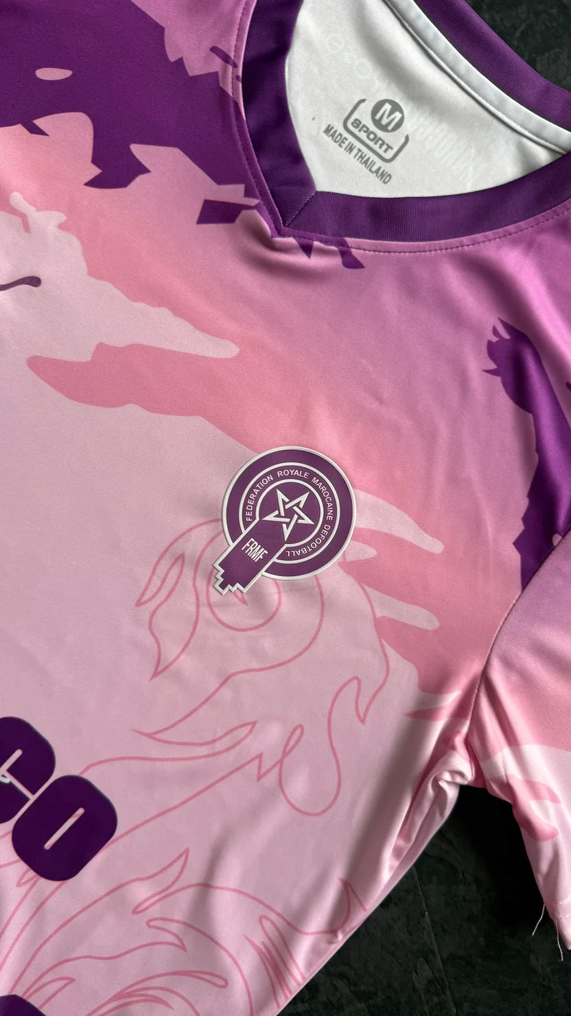 Stand out with the bold and artistic Morocco Special Edition Jersey 2026, a modern design inspired by Moroccan identity and creative football fashion. Featuring a unique pink-to-purple color palette with dynamic graphic patterns, this jersey delivers a fresh, contemporary look while proudly representing Morocco.